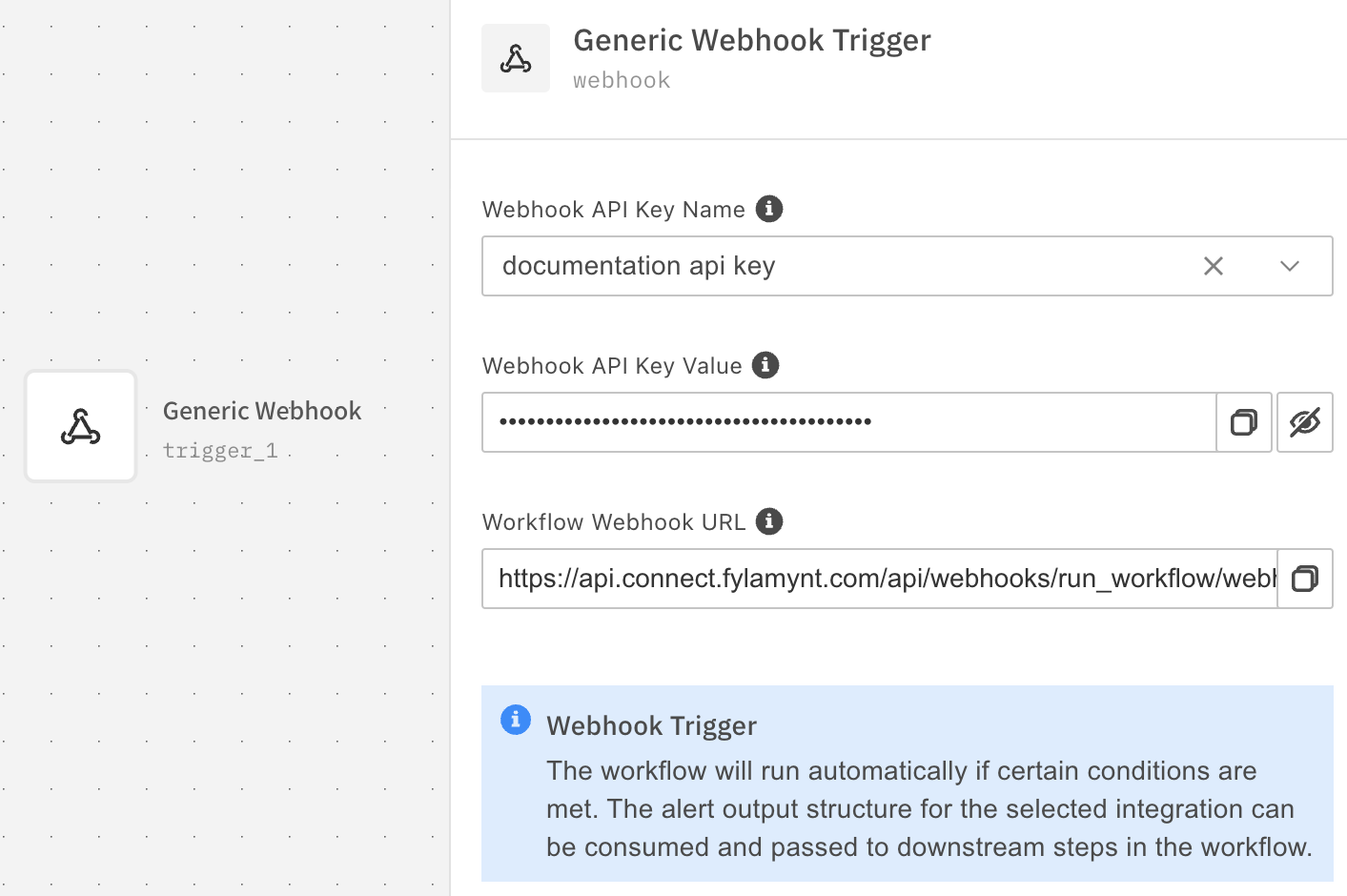 API keys are used for authorization of webhook integrations with Spot Connect. Each incoming webhook request is required to carry a valid Spot Connect API key in order to trigger a workflow execution.